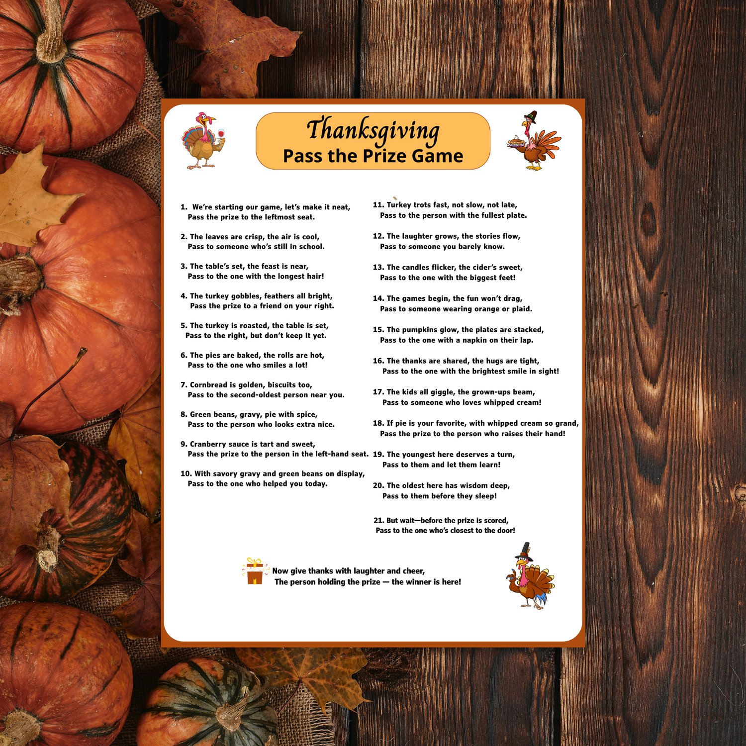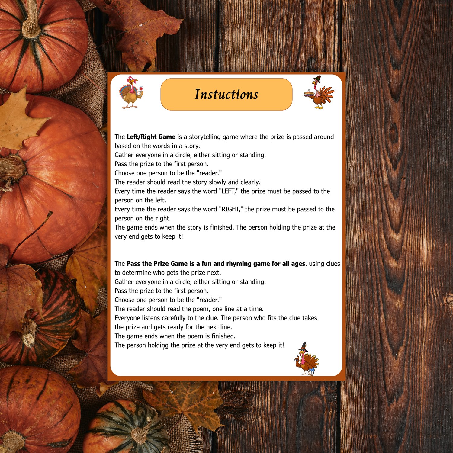 Get ready for fast-paced laughs with these two Thanksgiving Games - Pass the Prize Game and Left/Right Game! These printable party games come with instructions.