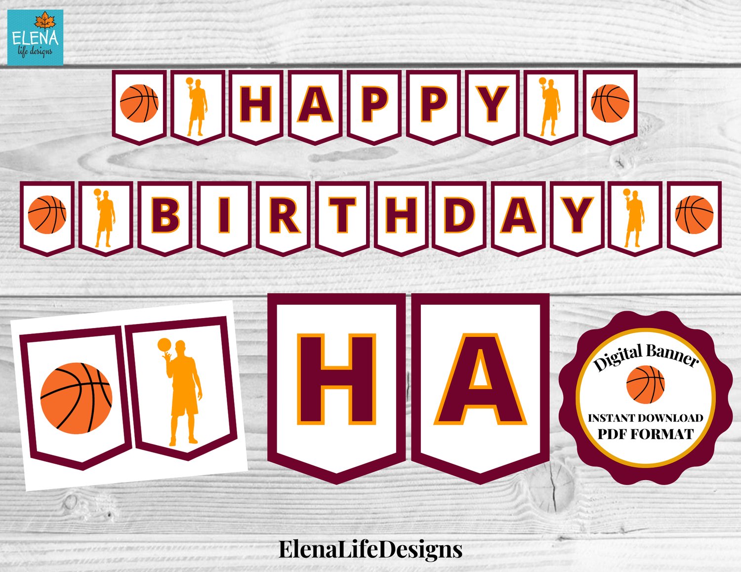 Basketball Digital Banner - Instant Download Happy Birthday Banner - Printable Basketball Birthday Banner - Basketball Player and Ball Wall Decor