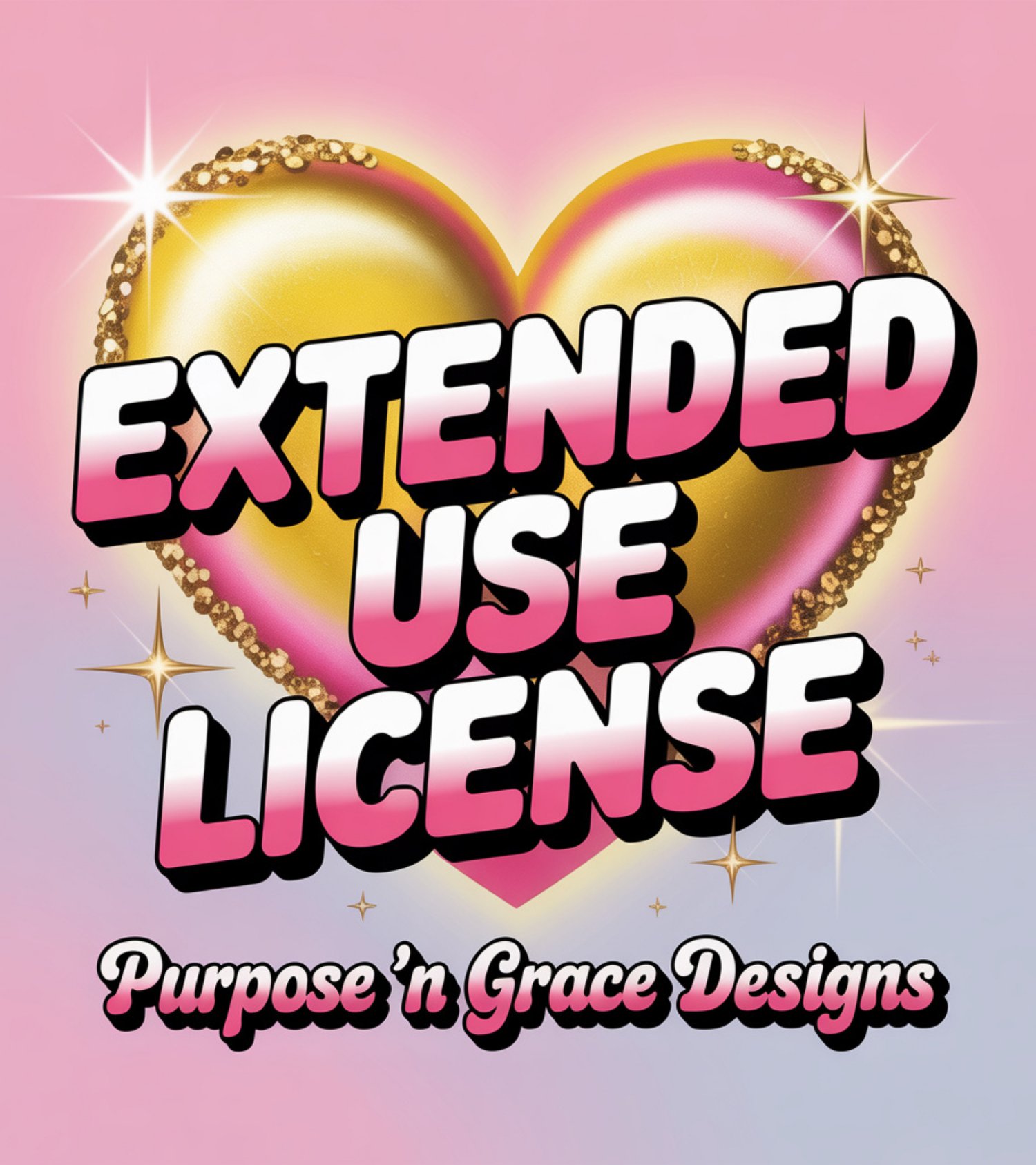 The Extended License gives you the freedom to sell unlimited physical products (shirts, tumblers, hoodies, mugs, etc.) created using my designs.