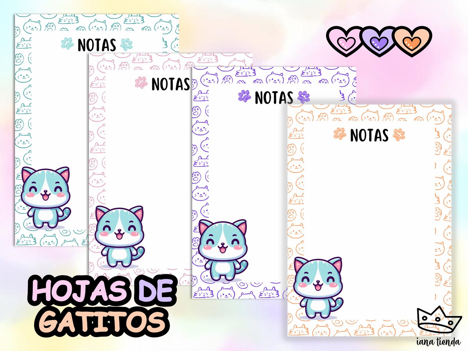Estas hojas para escribir notas, decoradas con adorables gatitos animados, añaden un toque de ternura y diversión a cualquier mensaje.