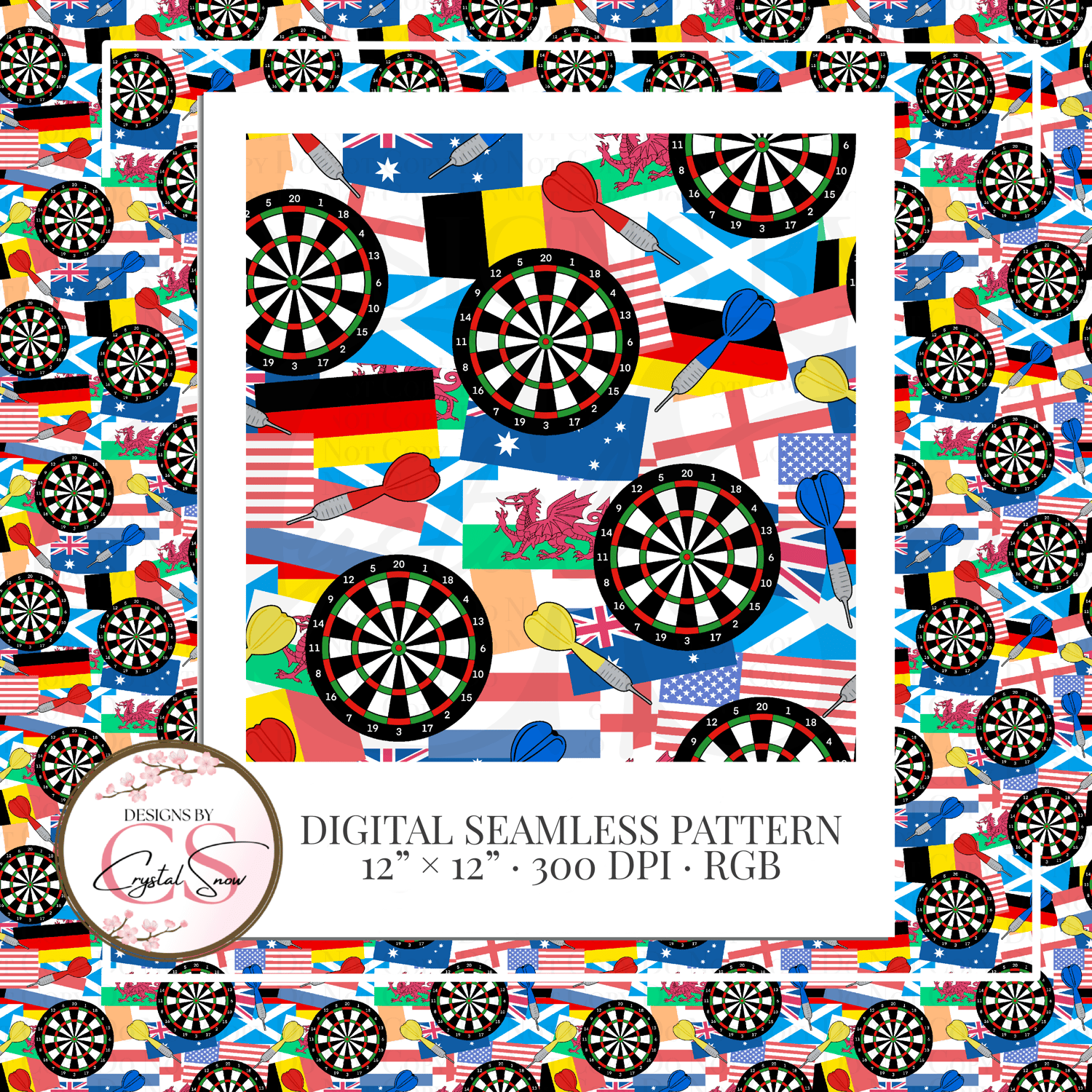 Dartboard World Tour Seamless Pattern PNG 12x12 | International Darts Flags Repeat | Sports Digital Paper 300 DPI