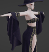 Outfit includes: Witch hat, strapless bra bustier, open skirt with belt, arm warmers gloves with bell sleeves.