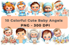 10 Colorful Cute Baby Angels PNG files in size: 5000 x 5000 pixels in 300 DPI with transparent background.