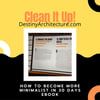 In this 30-day guide to minimalism, you will find a quick, easy-to-read format with 30 days of tasks and guidance. You can use it to practice minimalism one day at a time or you can merely scan through for ideas. You don’t have to go in any certain order and can skip anything that you don’t feel applies to your situation.This ebook contains tips for handling tasks that overwhelm you when clearing your space.