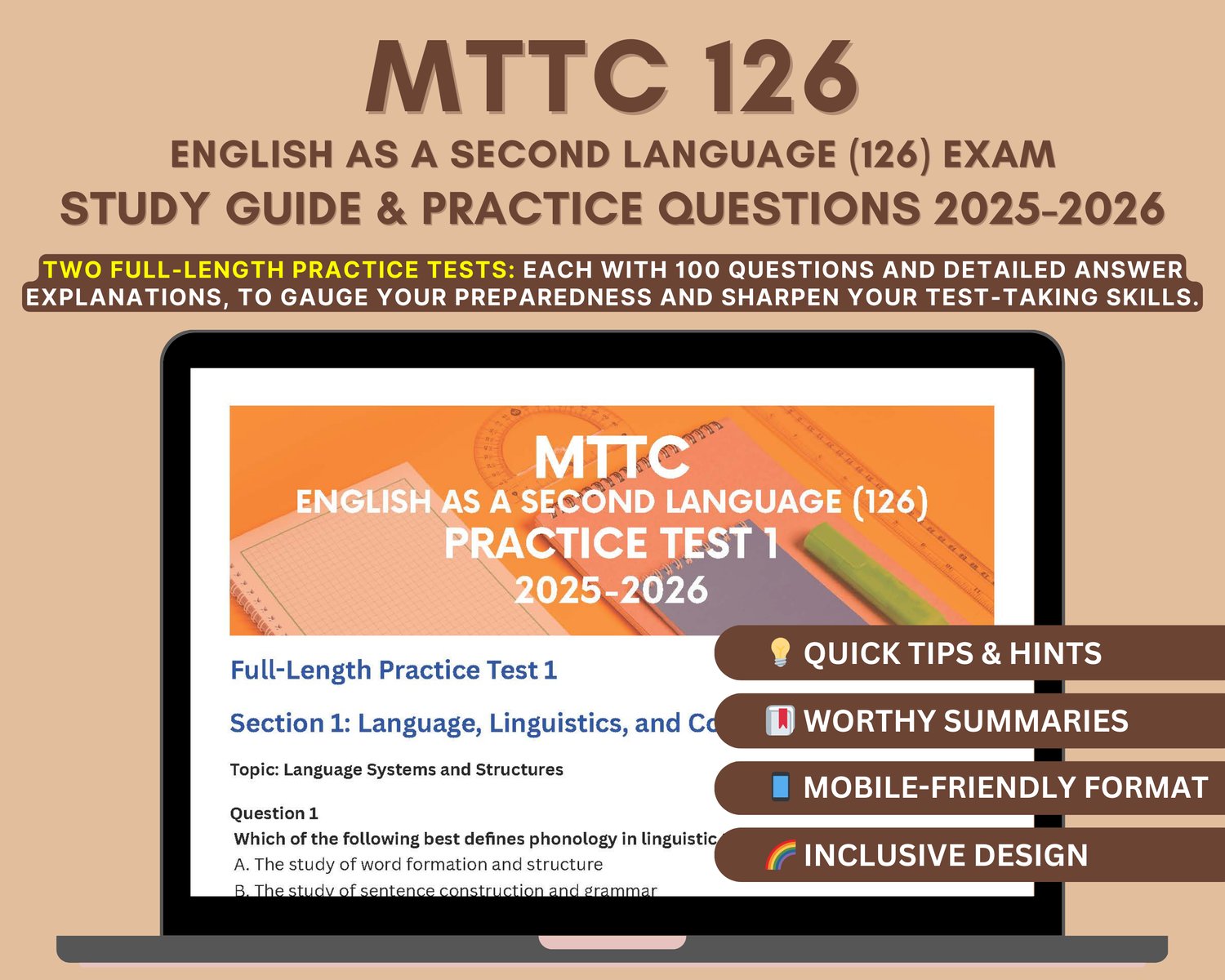 Looking for a complete and reliable prep resource to pass the MTTC ESL (126) Exam? This downloadable MTTC English as a Second Language (126) Study Guide 2025-2026 is designed to help you succeed on your first attempt. Perfect for aspiring ESL teachers, teacher candidates, and educators preparing for Michigan certification.
