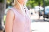This tank is worked in the round from the bottom to the armholes (with waist and bust shaping), then Back and Front are worked separately to the shoulders, which are joined using 3-Needle BO. The back neck edging is worked from the left shoulder to the right, then the edging stitches are joined using Kitchener stitch or 3-Needle BO, and the edging is sewn to the back neck edge.