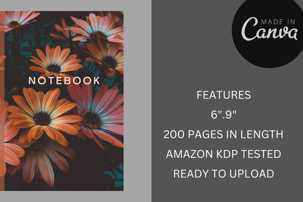 FLOWER KDP LINED PAPER COVER, LOW CONTENT BOOK COVER FOR KDP READY UPLOAD, FLOWER KDP JOURNAL PAPER, FLOWER JOURNAL NOTEBOOK MOCKUPS, KDP CANVA NOTE