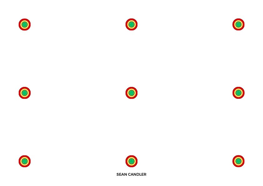 For saccade training, the dots act as clean visual targets for horizontal, vertical, and diagonal eye movements. When paired with a finger, laser pointer, or head-mounted laser, the grid with connecting lines becomes an effective CJPS tool, reinforcing cervical proprioception and the brain’s internal map of neck position in space.
