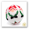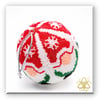 Becoming very popular lately are these 3-D peyote stitch balls, which come in all sizes and designs. One of a series of balls designed to match the Christmas Bells.