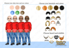 three different skin tones, three eye colours and six hair colours)