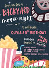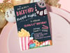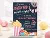 Pink Backyard Movie Night Birthday Party, Movie night birthday invitation, cinema, pastel, pink, movie, popcorn, girl invitation, sleepover