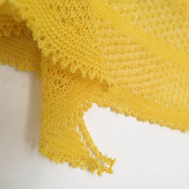 Pieces of Cirton shawl is light weight and airy shawl filled with summer joy. The shawl is worked top down, alternating garter stitch and lace stripes. The tiny lace pattern bobbles make the shawl stretchy and comfortable to ware. Picot edge brings together the delicate idea behind the shawl.