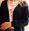 Once upon a time, I ordered four skeins of Nightshades to treat myself to a selfish knitting project—no really! I thought I could combine them in one of the many, many patterns in my Ravelry queue. But once they arrived, designer brain took over. I’d been daydreaming about a cozy garter stitch cardigan and brainstorming about how to make a project in such a simple stitch stand out. With these four moody shades in hand, it became clear—fade these subtle colors together, working from a center point. Many sketches and diagrams later, Humo Amargo was born. It’s worked side-to-side, beginning from a provisional cast-on at the spine. The colors transition as you work from the center back around to the fronts, which are left open and trimmed with a tidy i-cord. Two Latvian braids run down the spine and are mimicked with a column of slipped stitches down each sleeve to pull the whole design together. The result is akin to comfort food in a handknit: a squishy, easy fit sweater that will keep you snug and warm year-round.