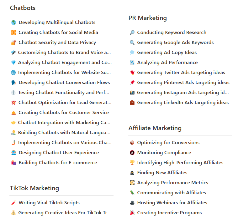 - **Content Creation**: Generate blog ideas, articles, and video scripts effortlessly.