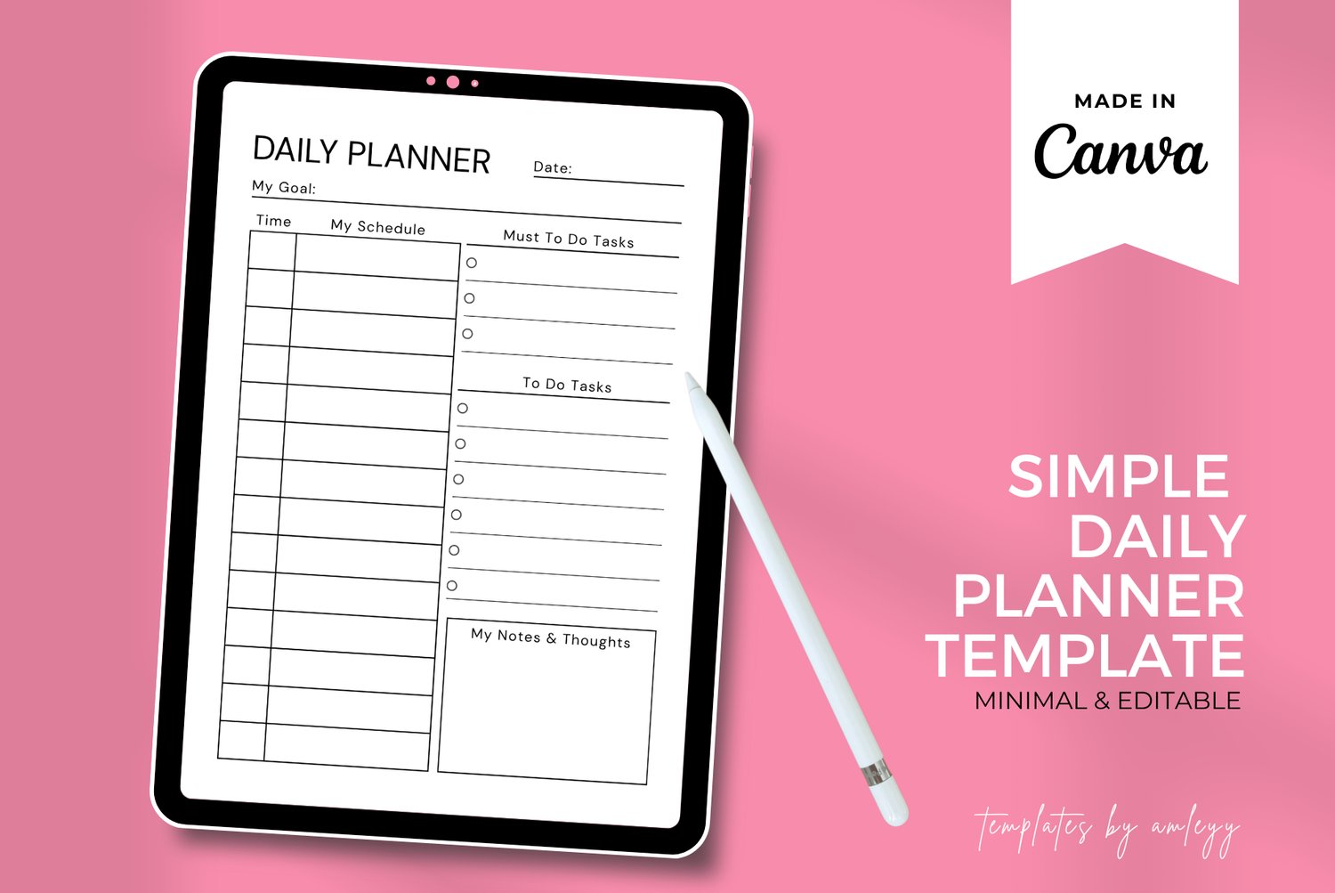 Streamline your day and eliminate distractions with the Ultimate Minimalist Daily Planner Template! This simple, highly functional black and white design is perfect for those who thrive on clarity, efficiency, and aesthetics. Designed to be fully editable in Canva, it offers a professional, ink-friendly solution for managing your time and tasks.