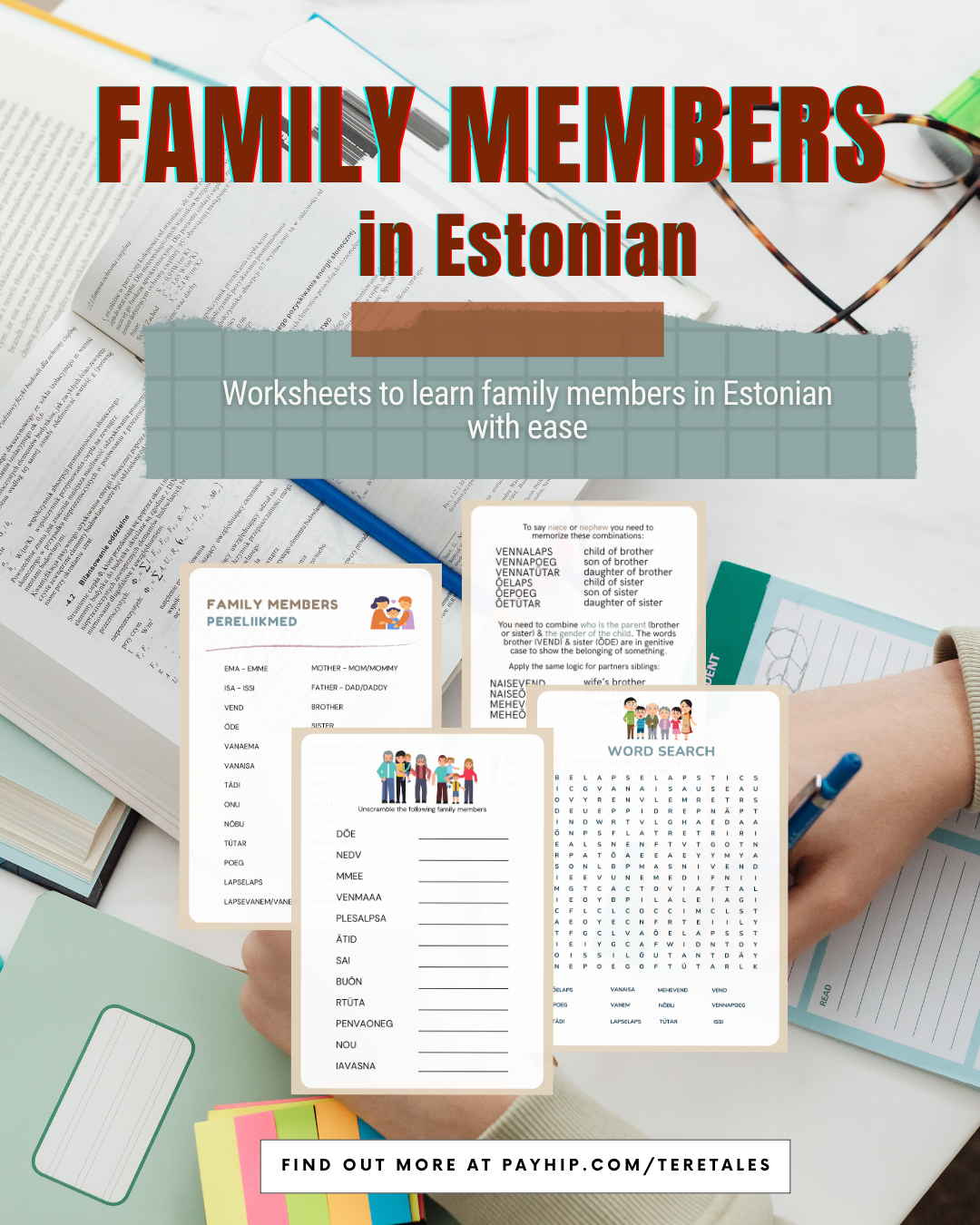 Learn family members in Estonian with explanation and exercises, for children and adults both.