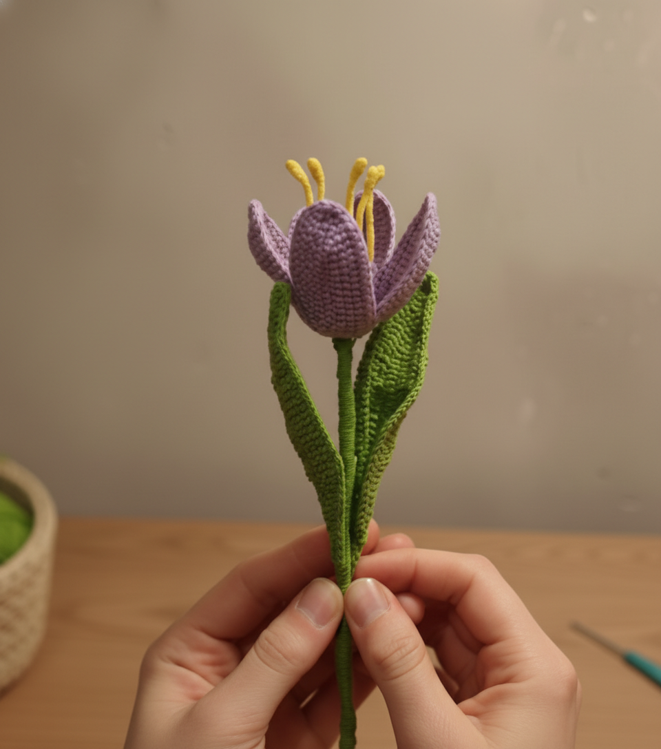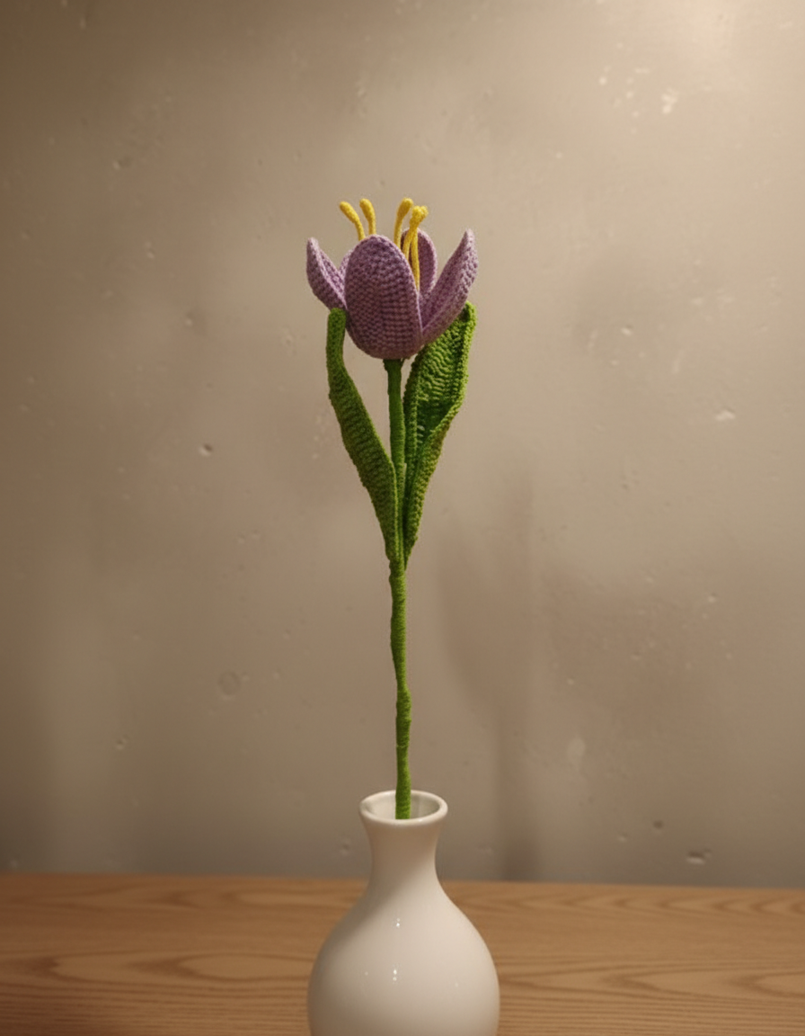 Crochet the classic blooming tulip, a soft and elegant blooming tulip crochet flower with this beginner-friendly pattern. Designed with romantic pastel tones and a realistic shape, this tulip is perfect for quick makes, thoughtful gifts, and minimal home decor.