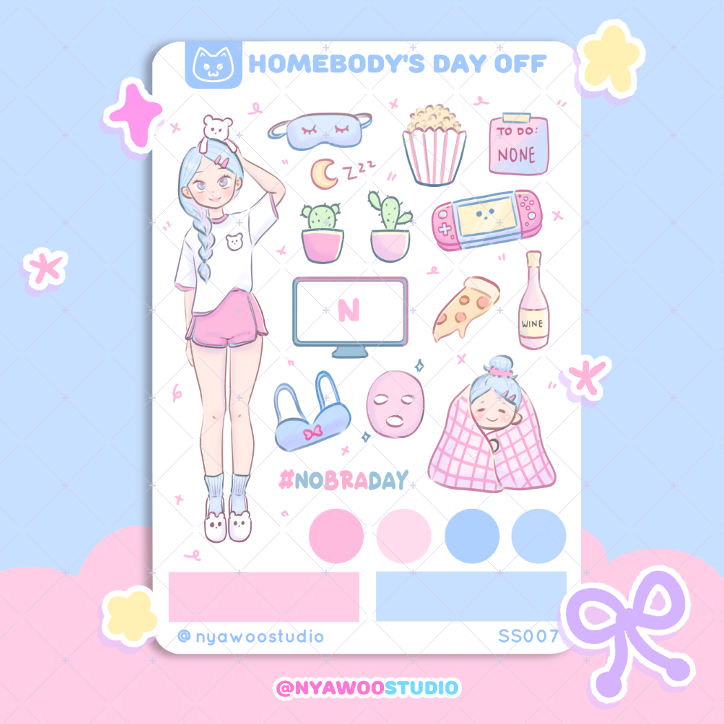 Homebody's Day Off Sticker Sheet for Planners, Scrapbooks, and Journals | Rest and Relaxation Theme