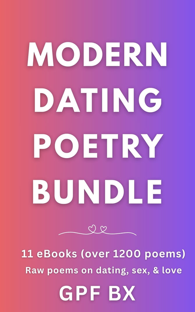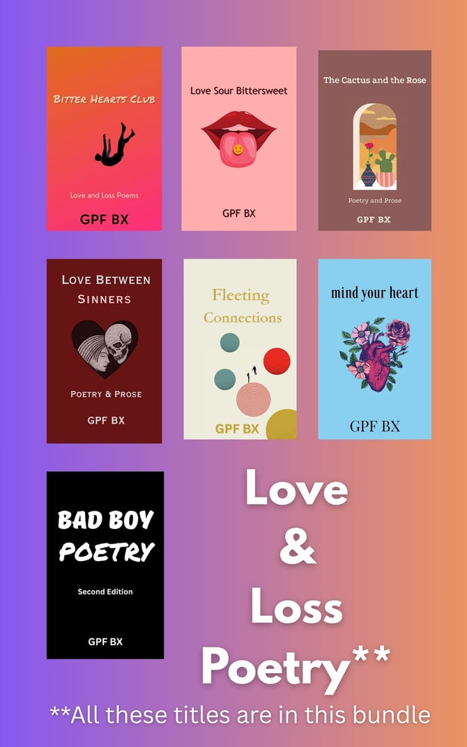 This Poetry Bundle is all about the mixed emotions involving dating, sex, and love. The poems breakdown: relationships, in-between relationships, situationships, FWBs, and exes. There over 1200 poems personally crafted by GPF BX. This is a digital eBook bundle only of ePub files.