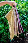The idea is to have the colours blend into each other by using the yarns held double throughout the work, and dropping one strand at the end of a section adding a new strand to the work as instructed.To prepare your yarn for the project I suggest either winding your skein into a centre pull ball/cake so you can pull from both the inside and outside of the ball/cake. Alternatively you can split your yarn into two 50gm balls/cakes.