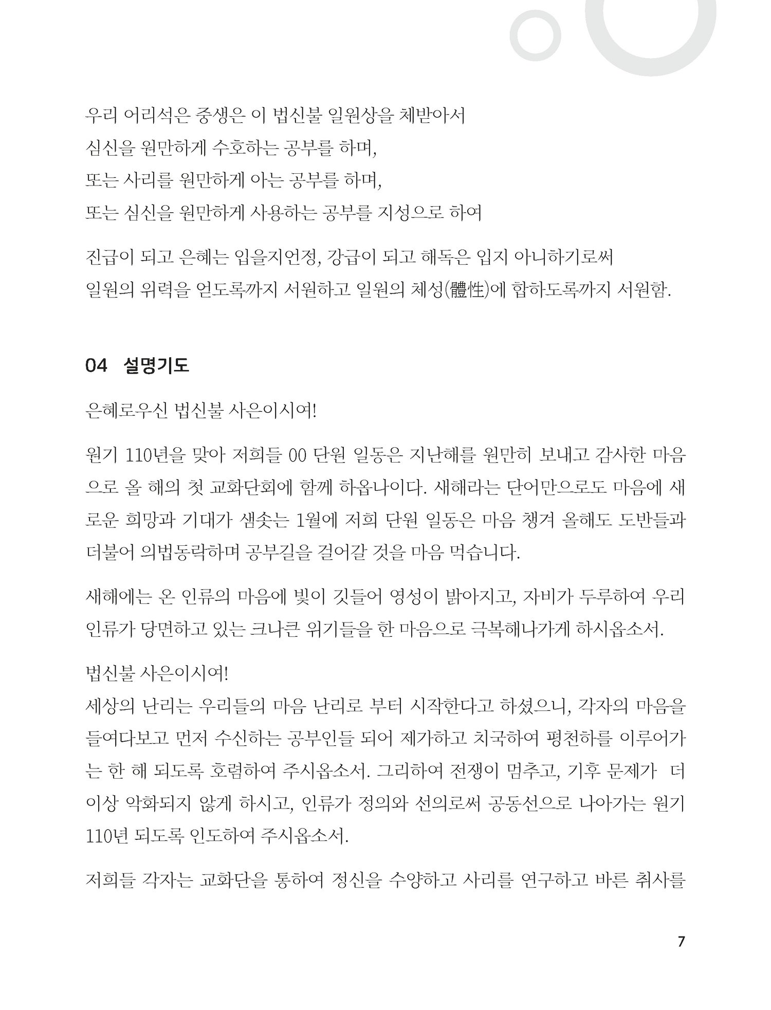 미주원불교 교화단 마음공부 (원기 110년 1 - 6월)
