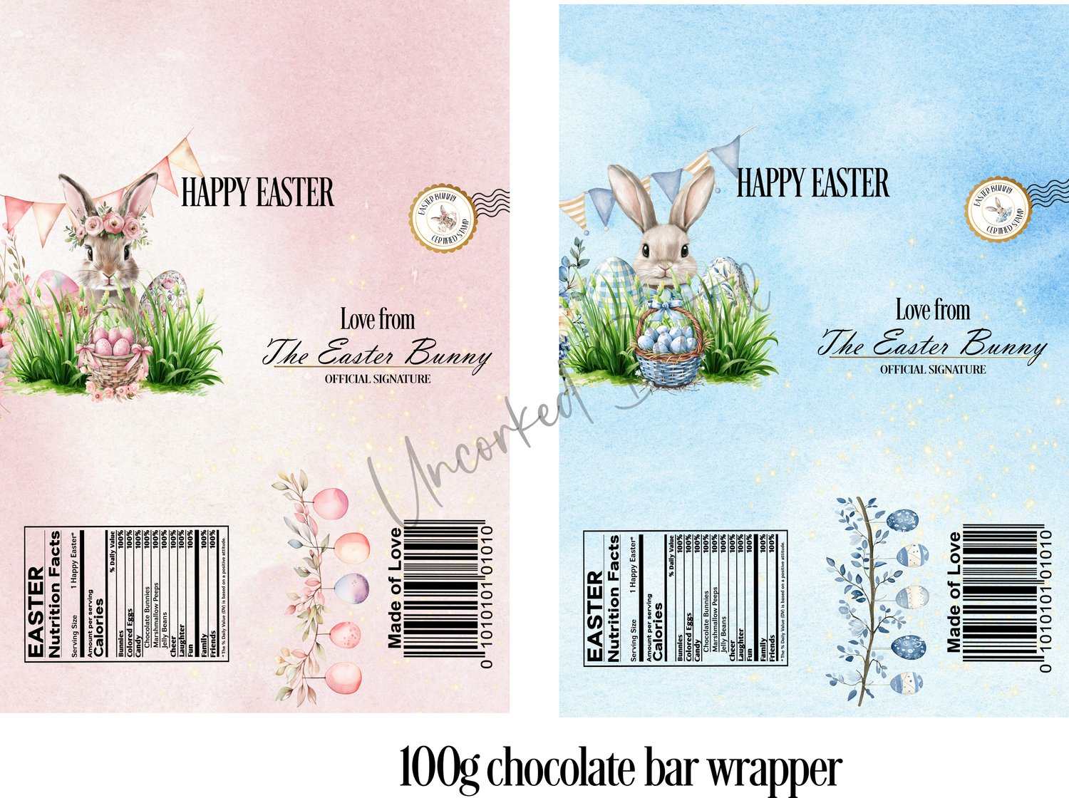 2 x 100g chocolate bar wrappers - print size - W 150mm x H 210mm