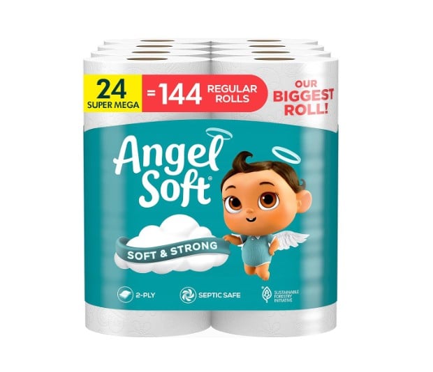 Angel Soft Toilet Paper, 24 Super Mega Rolls = 144 Regular Rolls, Soft and Strong Toilet Tissue