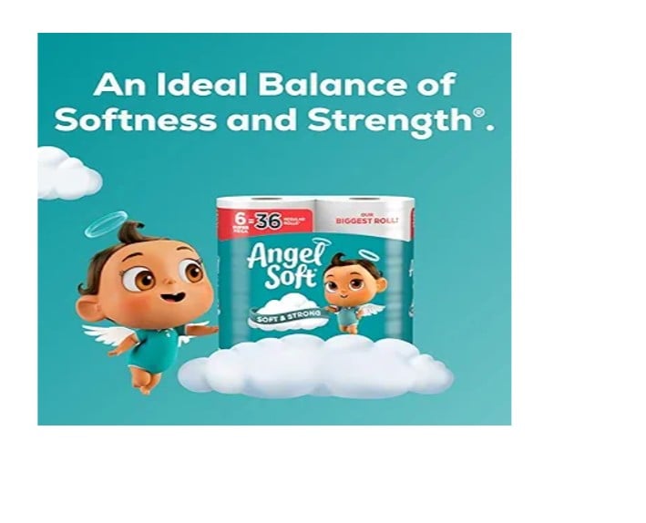 VideosAngel Soft Toilet Paper, 6 Super Mega Rolls = 36 Regular Rolls, Soft and Strong Toilet Tissue