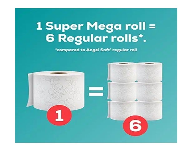 Each Super Mega Roll is equal to 6 Angel Soft regular rolls, so you can change the toilet paper rolls less often.