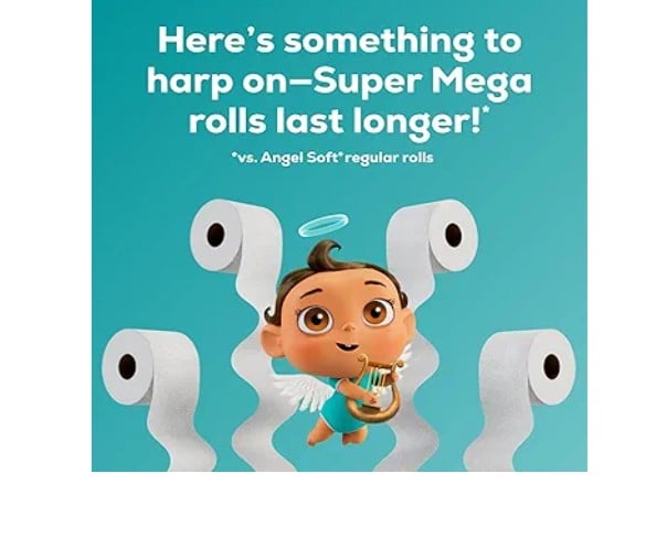 rolls that are 6 times as big as our regular rolls so you can change the roll less often. With 480 2-ply sheets on every Angel Soft® Super Mega Roll, that’s 84 more sheets than the Charmin® Ultra Strong™ Super Mega Roll! Plus, each generously sized roll still fits in most standard bathroom toilet paper holders. And like all your favorite Angel Soft products, our Super Mega Rolls are flushable and septic safe in well-maintained sewer and septic systems. Angel Soft® Toilet Paper. Soft and Strong. Simple.