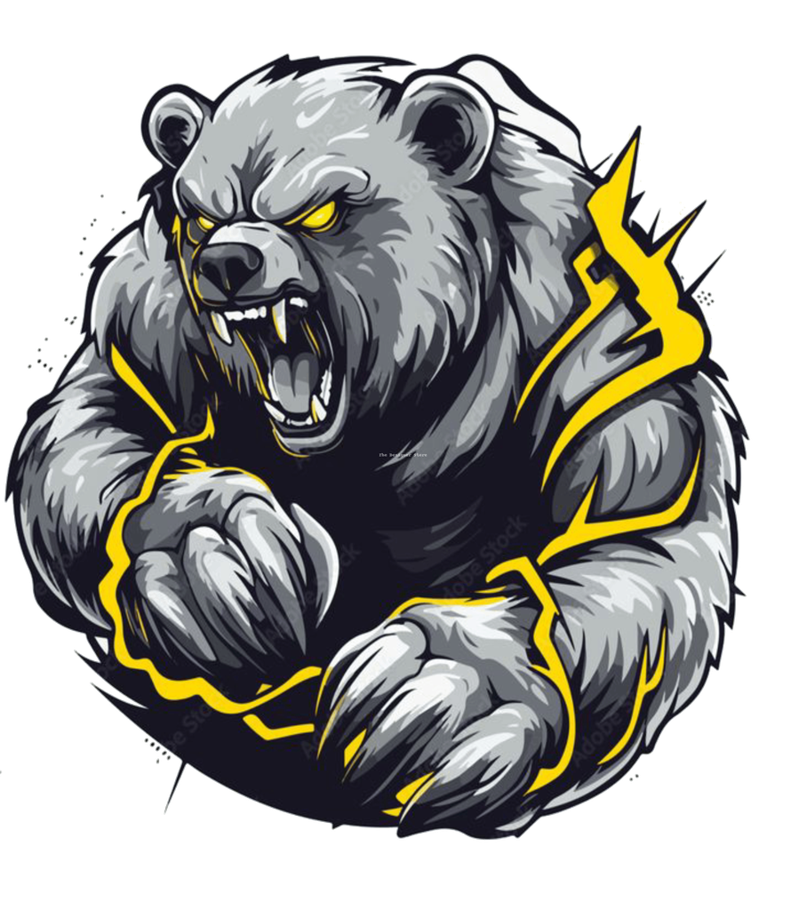 Stand out with this bold and powerful grizzly bear mascot logo, perfect for sports teams, eSports clans, and gaming streamers. Featuring sharp details, intense yellow highlights, and a fierce roaring pose, this design brings strength and energy to any brand. Ideal for T-shirts, hoodies, stickers, or digital branding. High-resolution PNG with transparent background for easy use in print and digital projects.