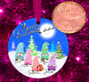 Hand drawn Christmas gnome family Christmas round, 2 x 5 family members, incl. mock up