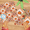 A colorful pattern for the fall season, with pumpkins, maple and oak leaves, and orange flowers. Create digital graphics and seasonable printables, bulletin board borders, games, stickers, party decor and more.