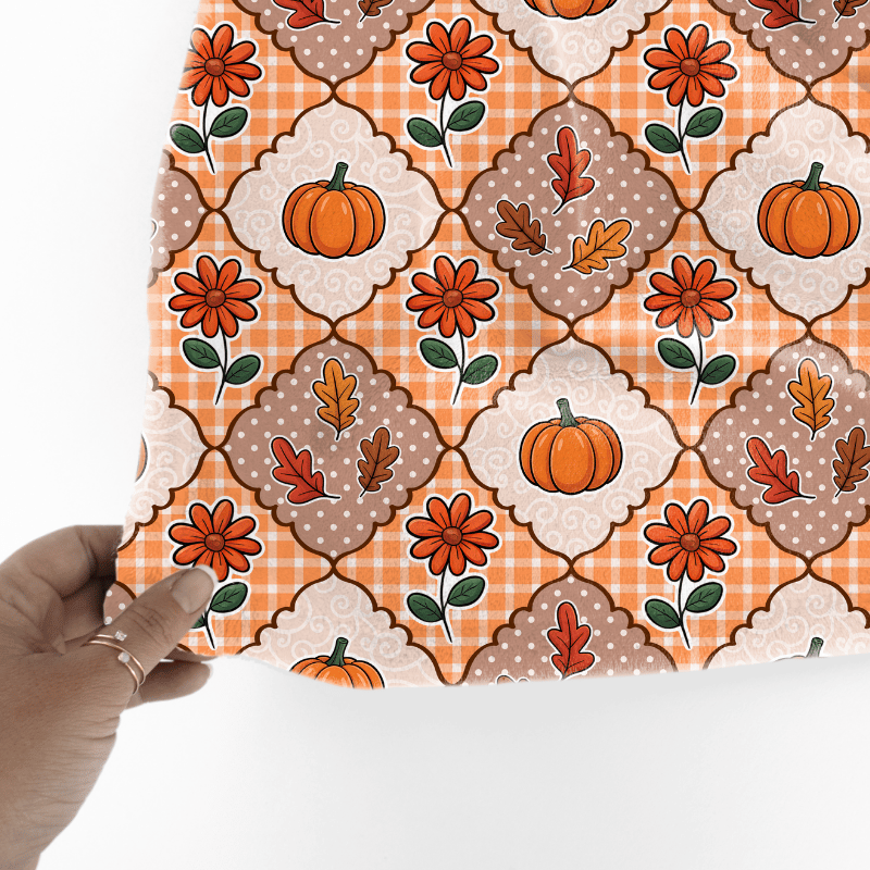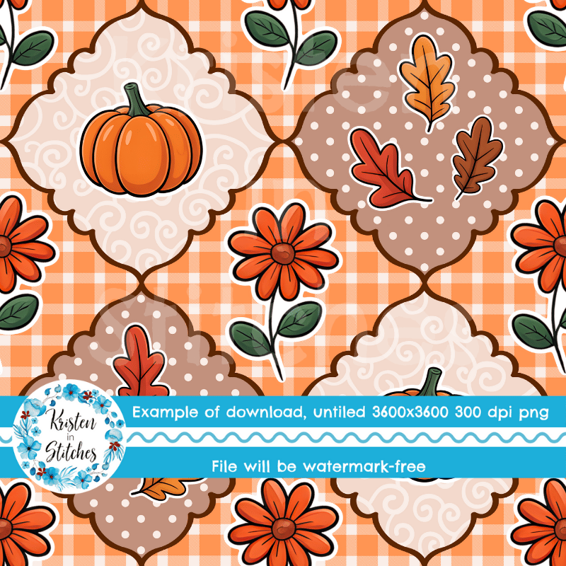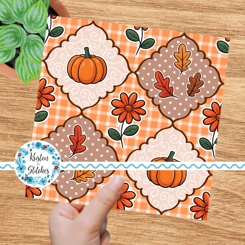 Fall Patchwork Seamless Pattern, Pumpkins Leaves Autumn Flowers