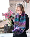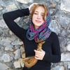 Spirali is an infinity scarf featuring an continuous spiraling mosaic pattern.