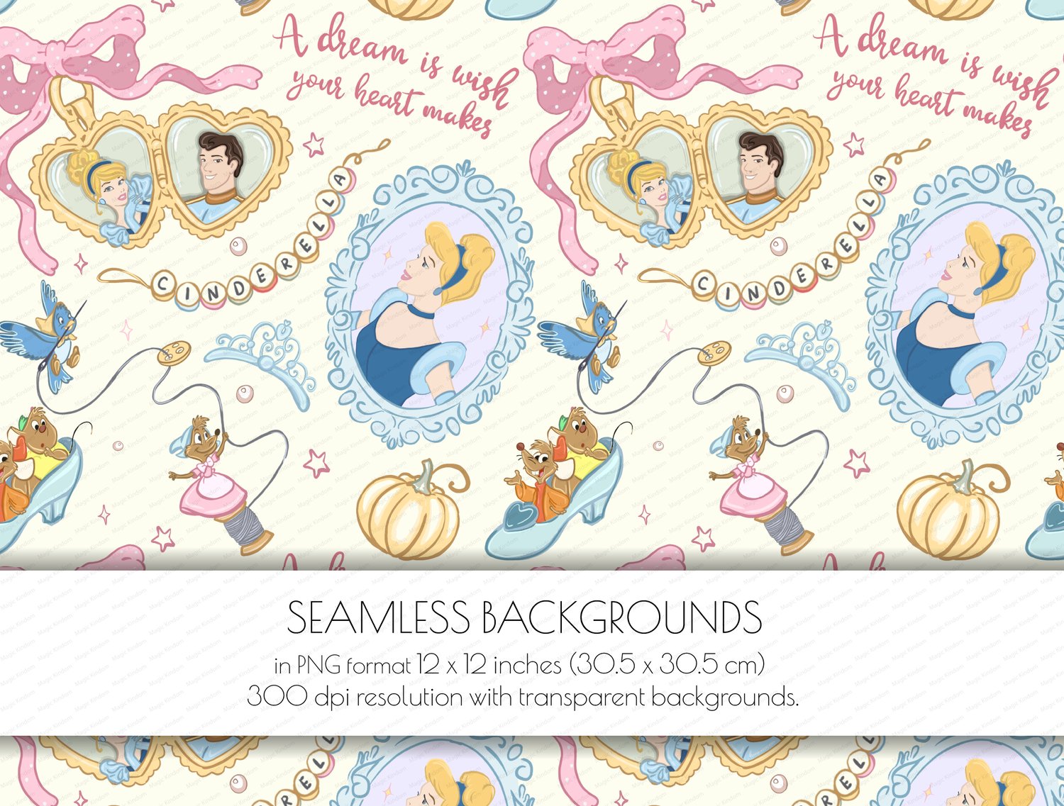 This Cinderella, Heart locket.Princess, seamlessbackground will be perfectly sutable for projects such as printing projects, sublimation,party invites, scrapbooking, greeting cards !!!