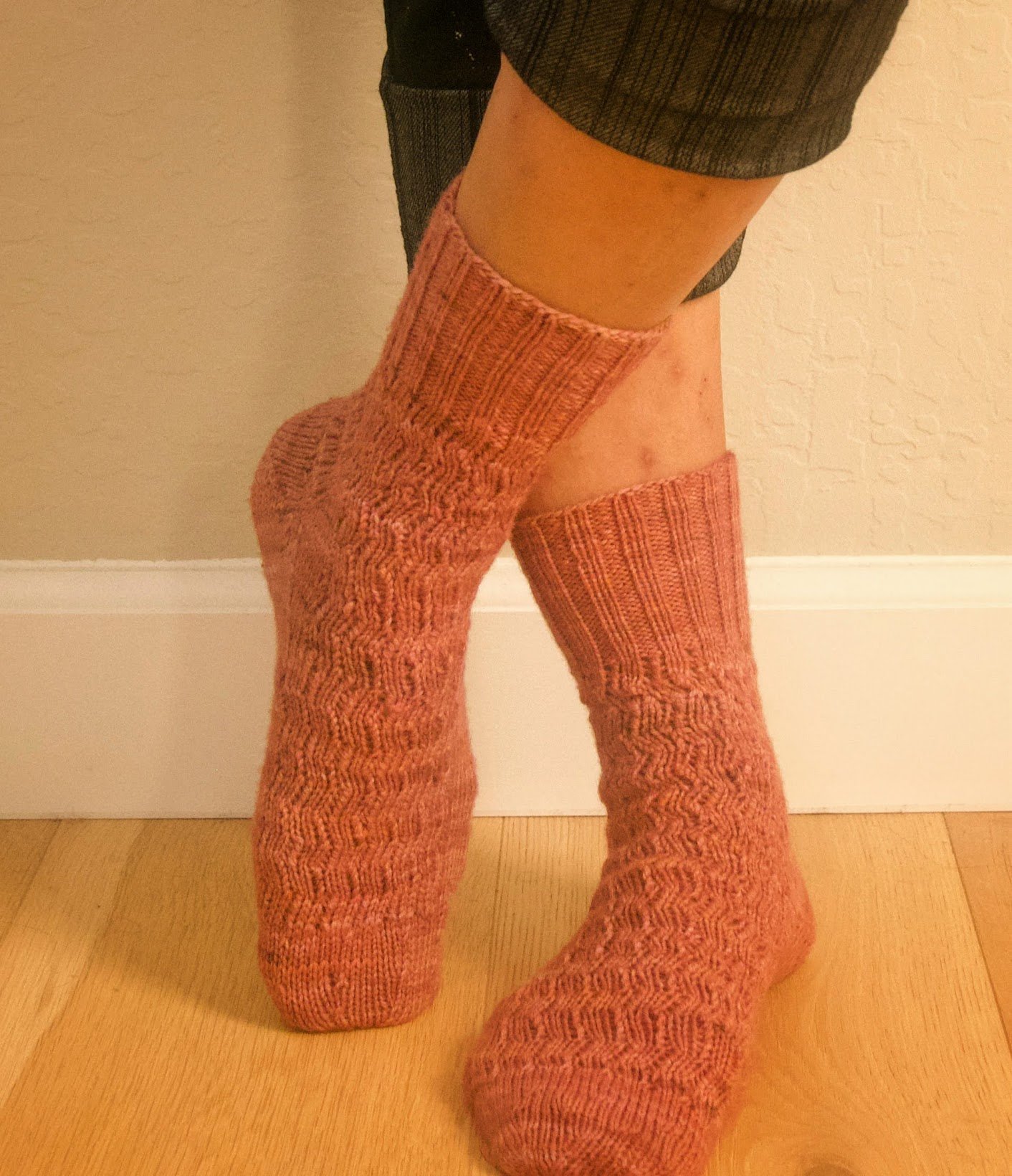 Shadow wrap short-row heel, mini gussset, rounded toe.