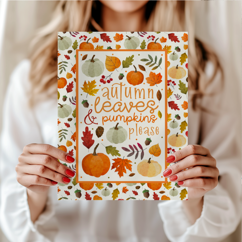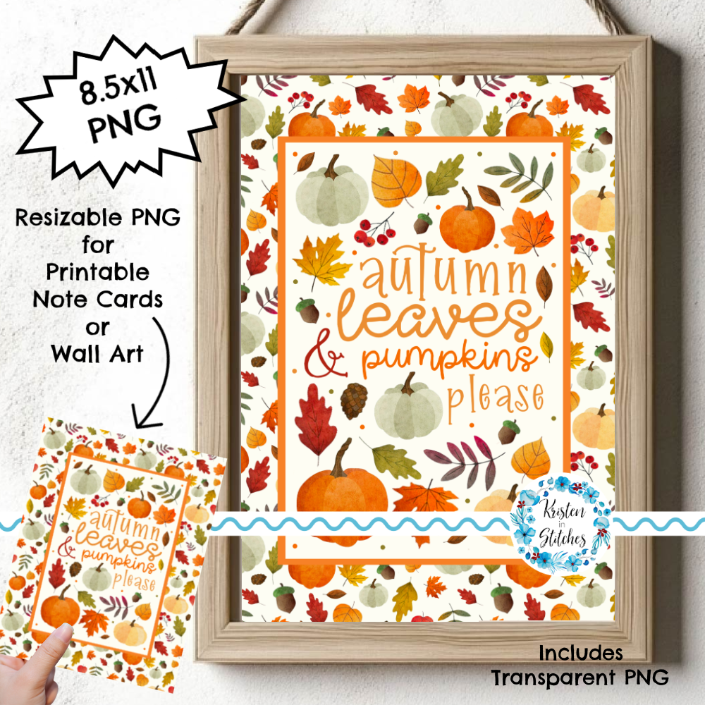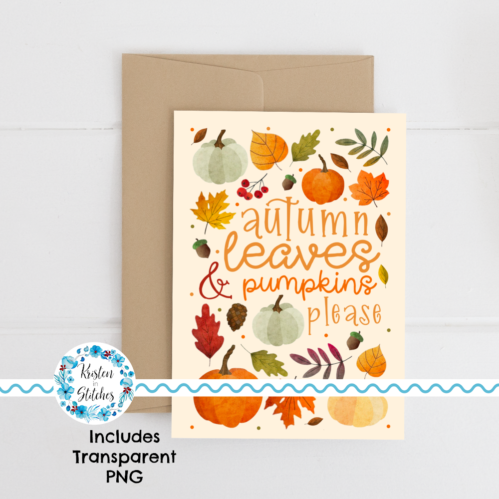 Printable Cards and Wall Art, PNG Transparent Graphics, Autumn Leaves and Pumpkins Please
