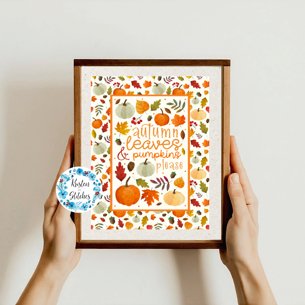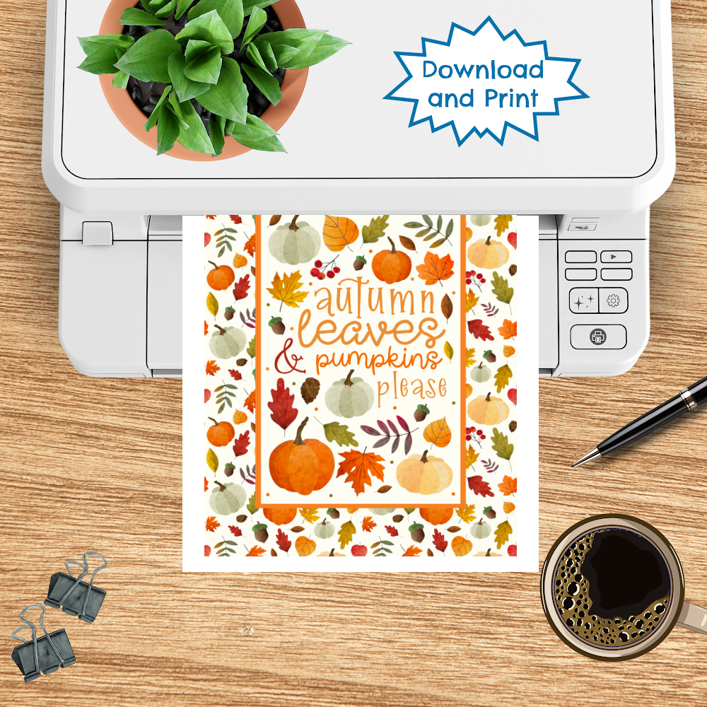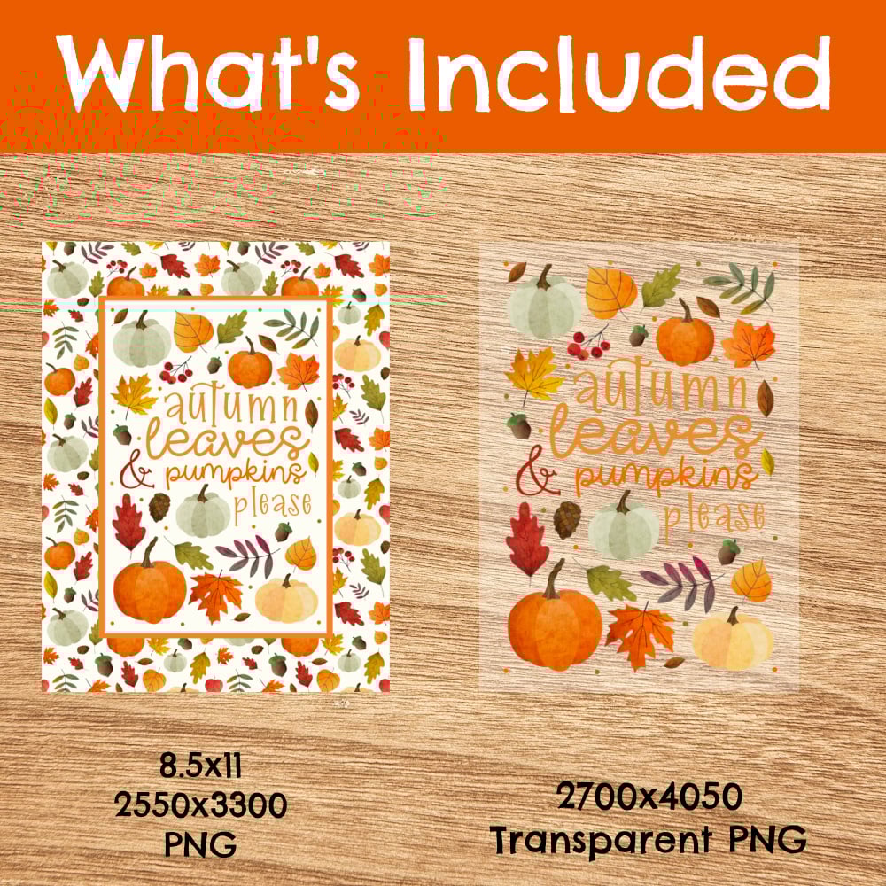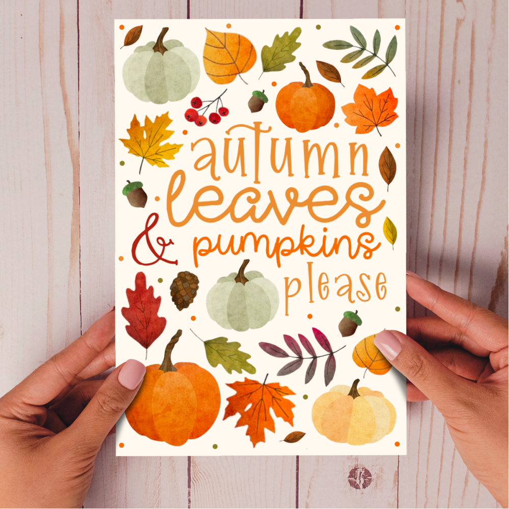 Printable Cards and Wall Art, PNG Transparent Graphics, Autumn Leaves and Pumpkins Please