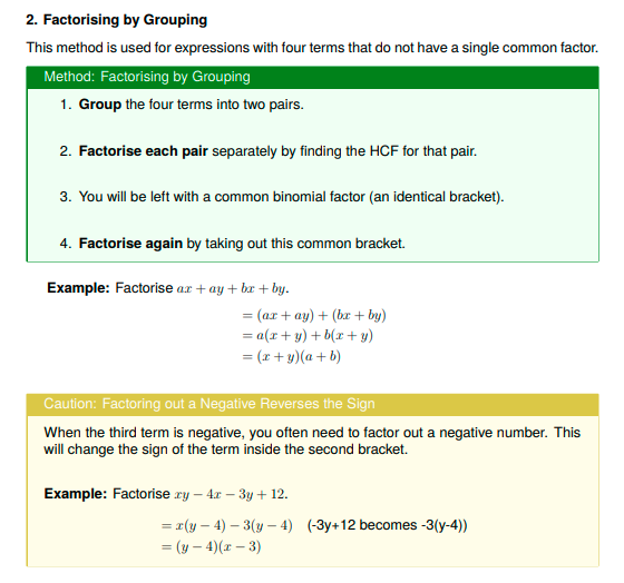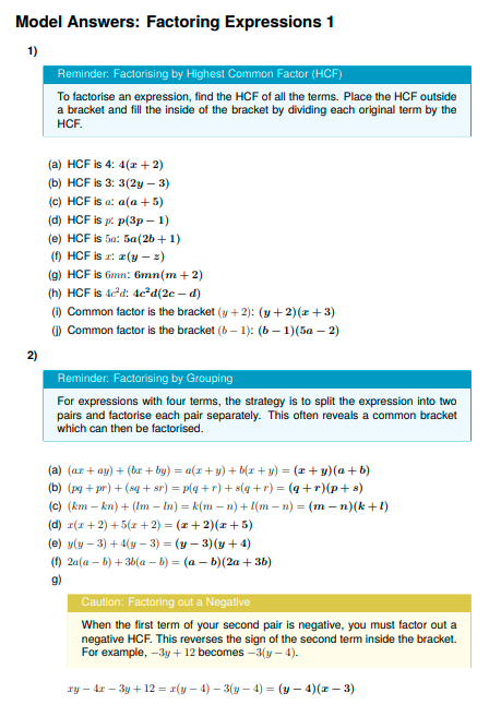 IGCSE Higher Maths: Factoring Expressions (Worksheet & Model Answers)