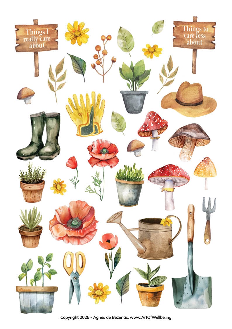 The heart of this set is simplicity: choosing where to place your care with intention, so life feels lighter, freer, and more in tune with what really matters. Print, cut, and play with the pieces to craft a page that reminds you daily of your own clarity and calm. 🌸