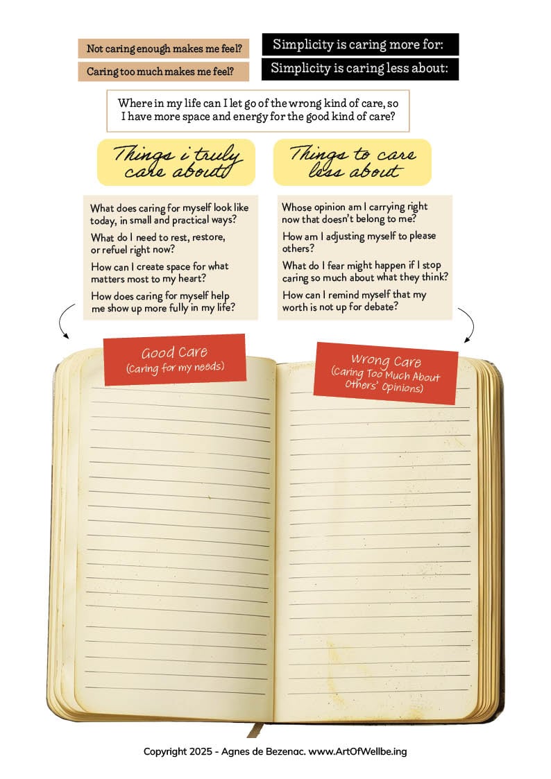 This is the 7th in my series Crafting and Journaling Simplicity. In this set, we’re focusing on care—learning to care more for the things that truly matter to us, and caring less about the opinions that weigh us down.