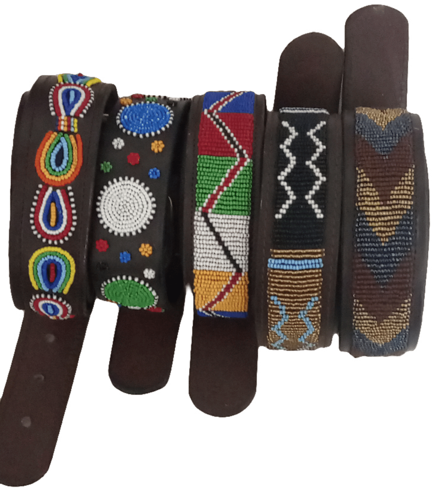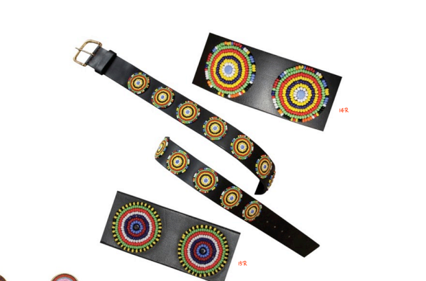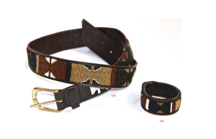 Durable quality beaded leather belts. Beads are sewn into leather making very beautiful patterns. High-quality leather and beadwork finishing. brass buckles. Available in primary colors, secondary colors, and earthly colors e.g. brown.