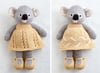 The pattern comes with full instructions for knitting and finishing a koala with knitted on knickers/panties and shoes and a removable dress. Included are instructions to make 2 dresses, one is in stranded colour-work and the other knitted in a single colour with a textured design.