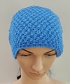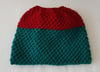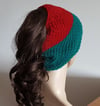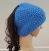 This warm and cosy 12ply ponytail/messy bun beanie is worked in double moss stitch throughout. It can be worked in one or two colours.