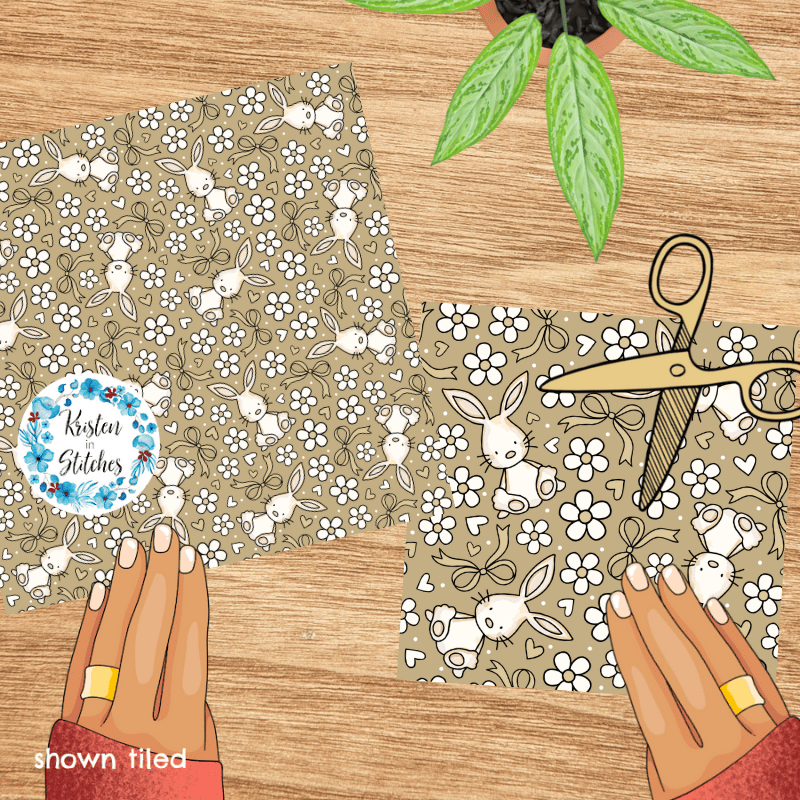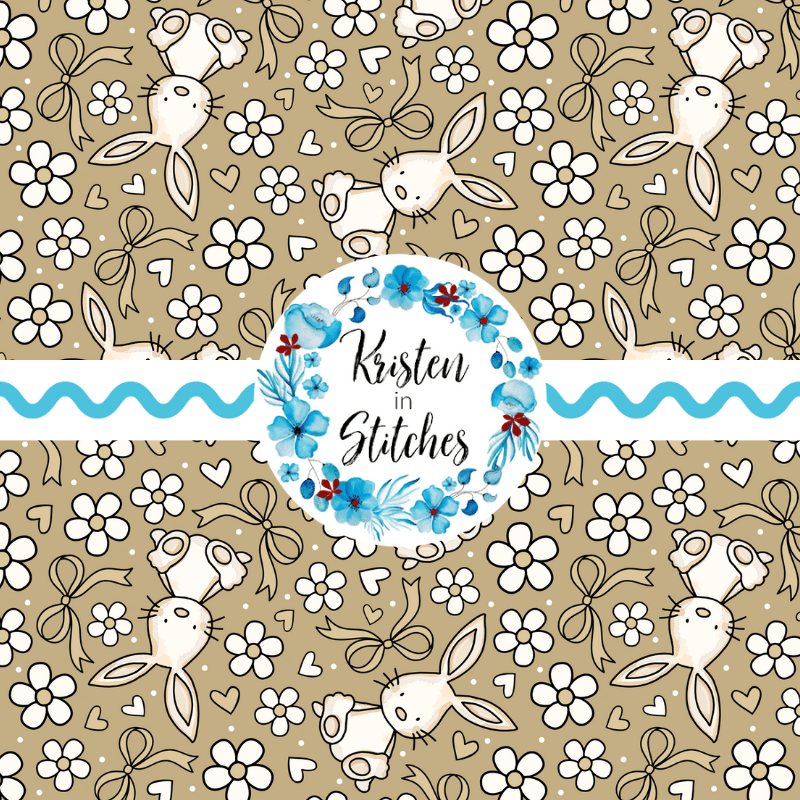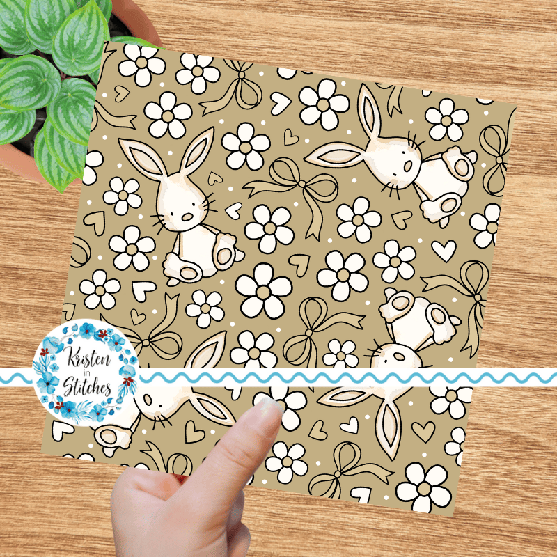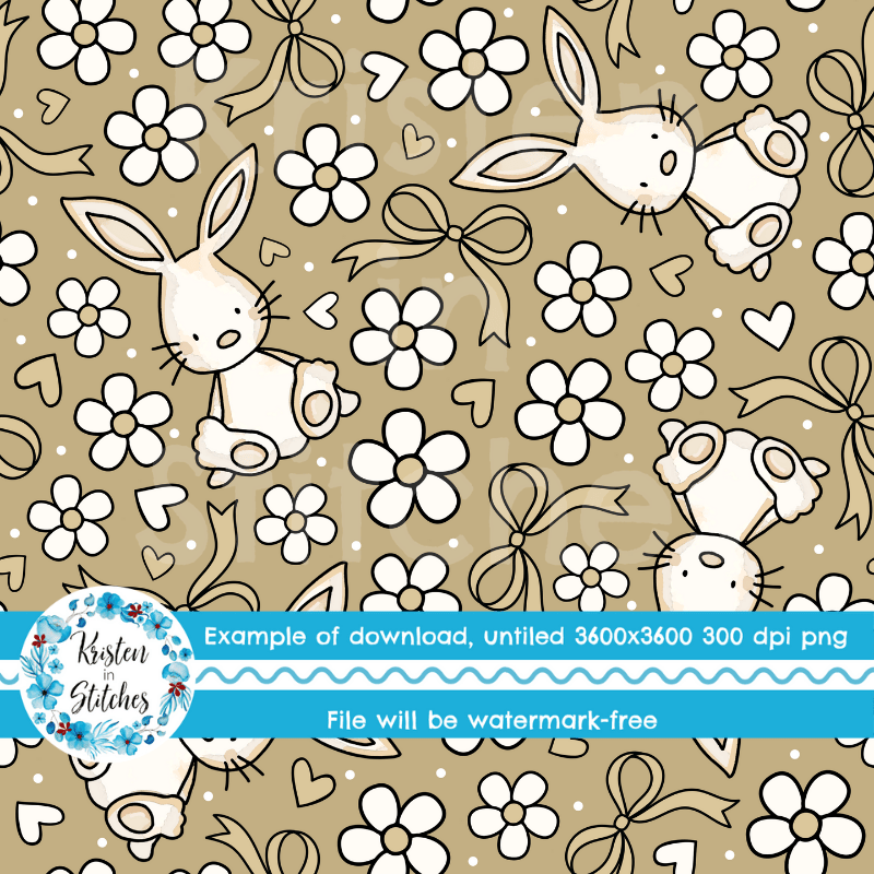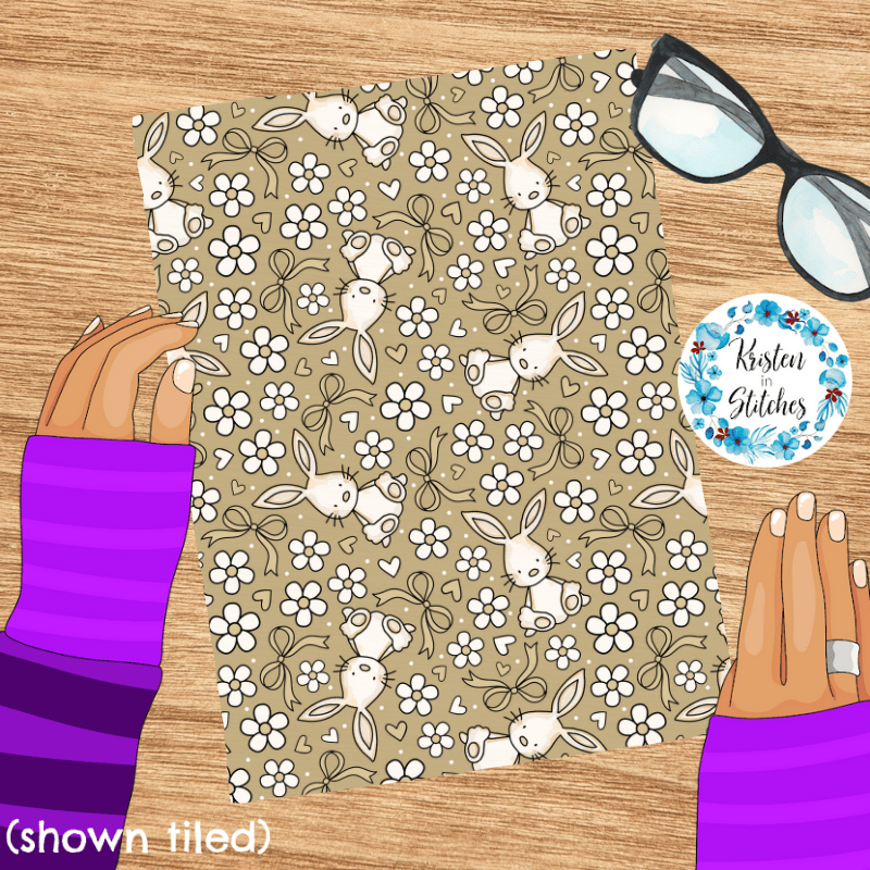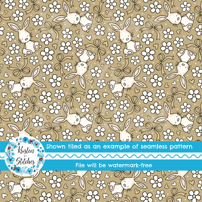 Spring Bunnies and Bows Seamless Pattern, Easter Bunny Rabbit in Tan