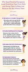 Perfect for educators, parents, and advocates, this infographic provides an accessible entry point into essential conversations about gender equity and how to foster respect for both boys' and girls' choices and boundaries. With a mix of compelling statistics, impactful visuals, and thoughtful insights, this tool highlights how these everyday moments can shape a child’s worldview and influence broader societal norms. Make this infographic part of your toolkit to promote inclusivity and equal treatment for all genders.
