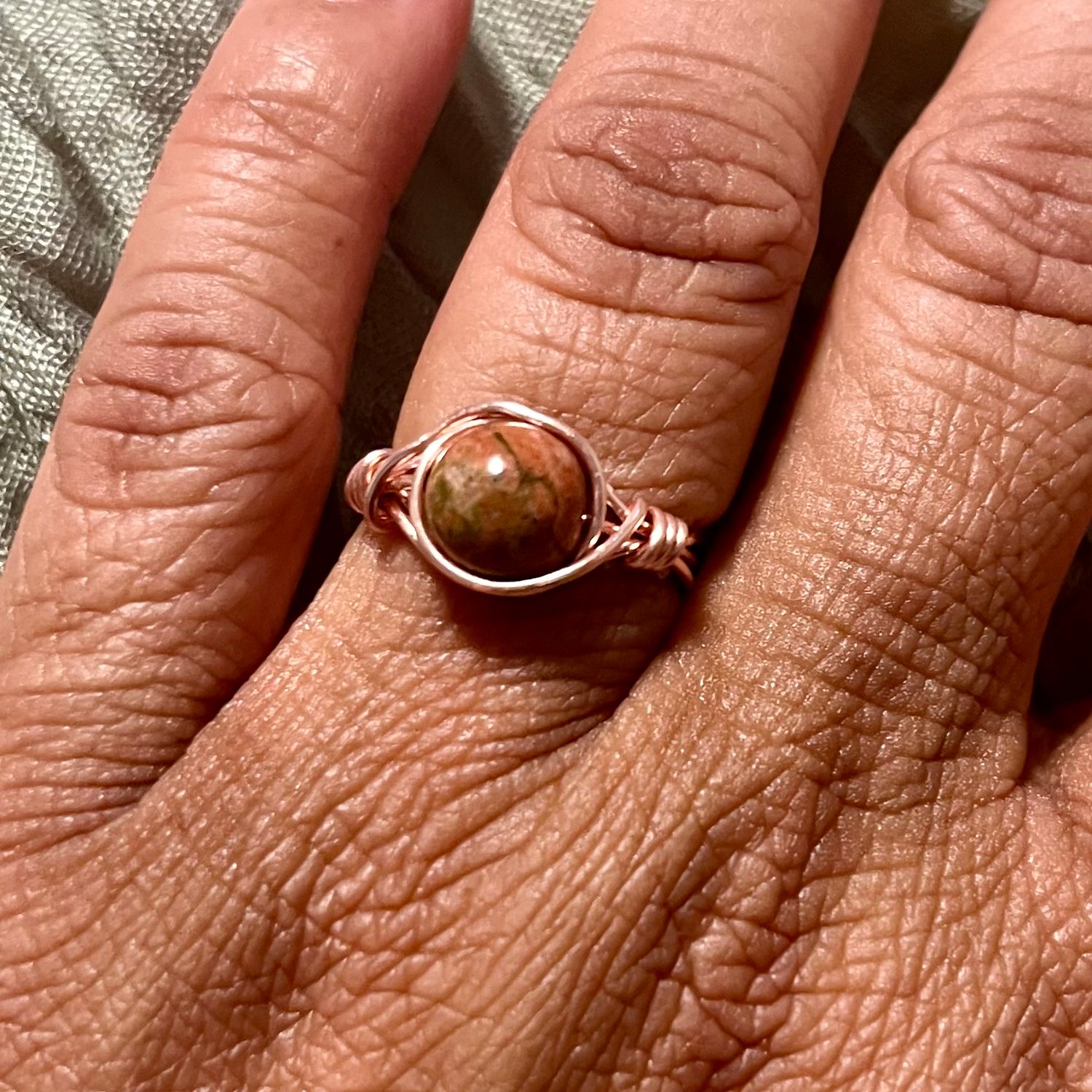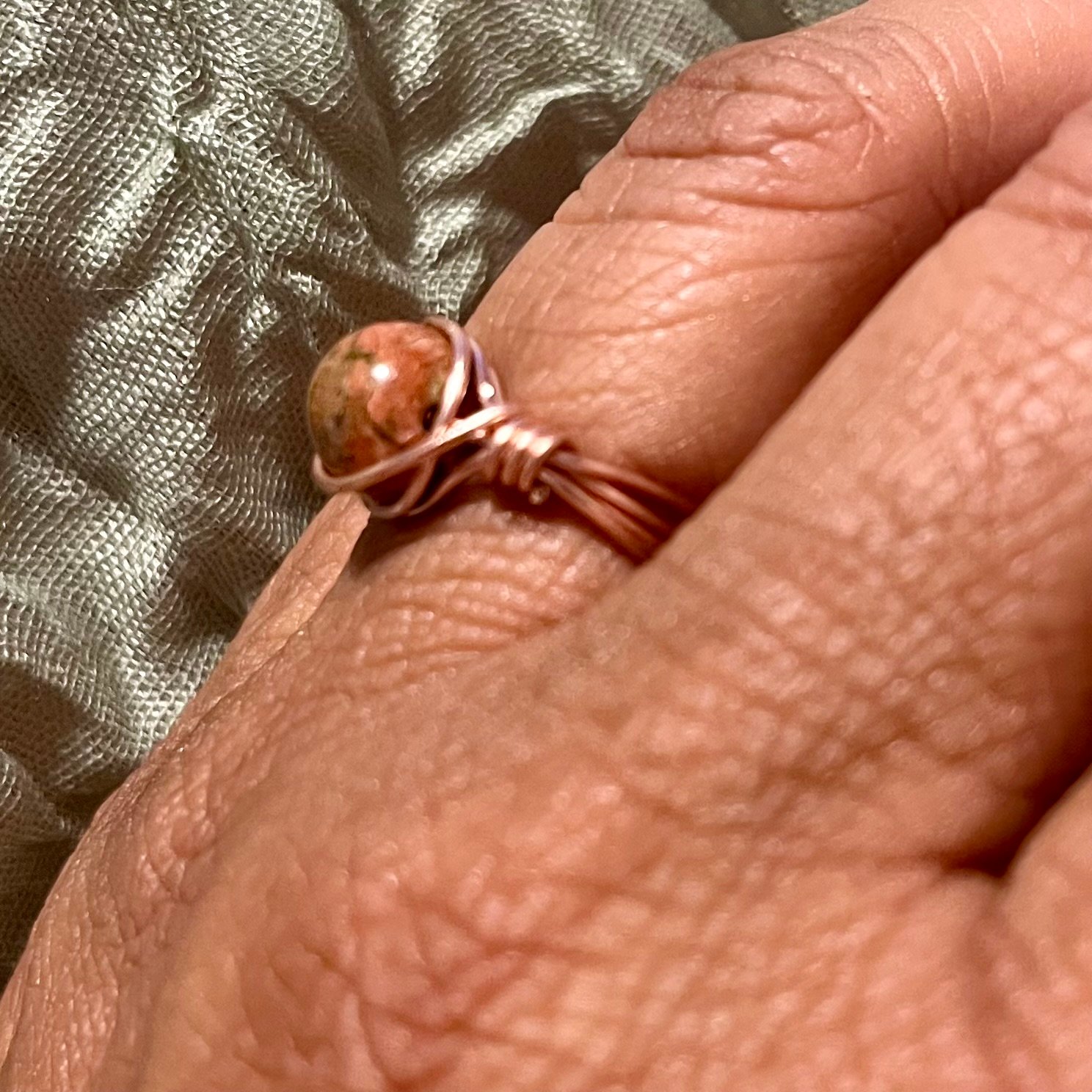 Unakite Wire Wrapped Ring – Copper & Crystal for Grounded Heart Healing