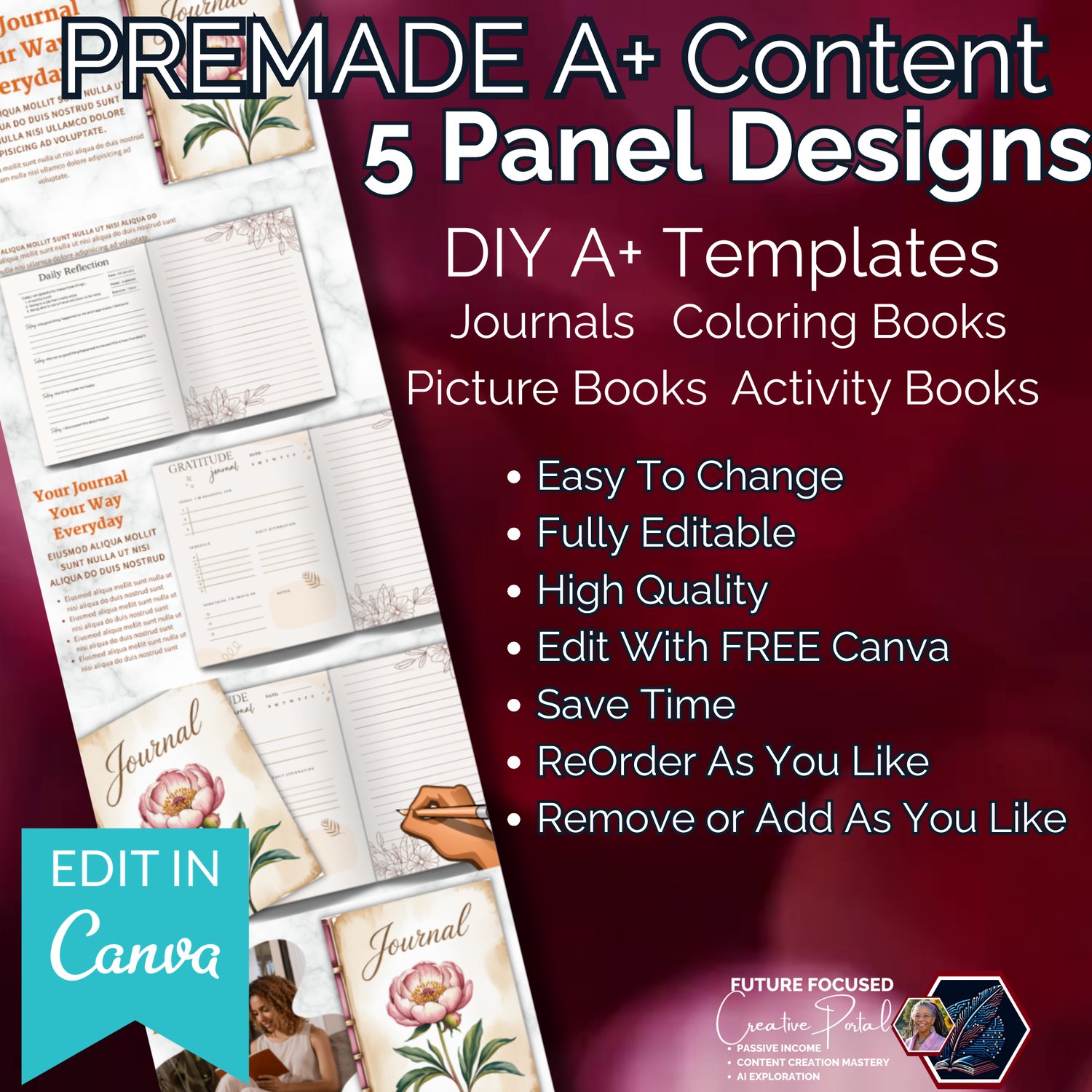 Done-For-You KDP A+ Canva Templates + GPT – 5 Fully Editable Designs