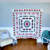 This digital PDF quilt pattern is a medallion-style sampler quilt featuring a hybrid construction of English paper piecing and machine piecing. Beginning at the center, each round is comprised of panels of English paper pieced (EPP) blocks, which are then machine sewn from the center outwards to create the quilt top.
